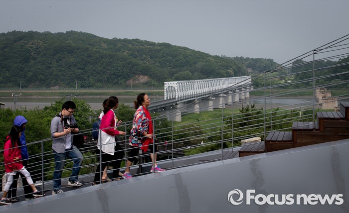(파주=포커스뉴스) 6·15 남북공동선언 16주기인 15일 오전 경기도 파주 임진각 통일전망대를 방문한 관광객들이 주변을 둘러보고 있다.