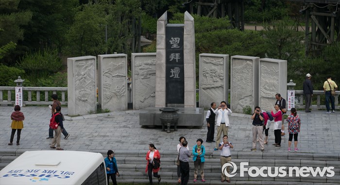 (파주=포커스뉴스) 6·15 남북공동선언 16주기인 15일 오전 경기도 파주 임진각 통일전망대를 방문한 관광객들이 망배단을 살펴보고 있다.