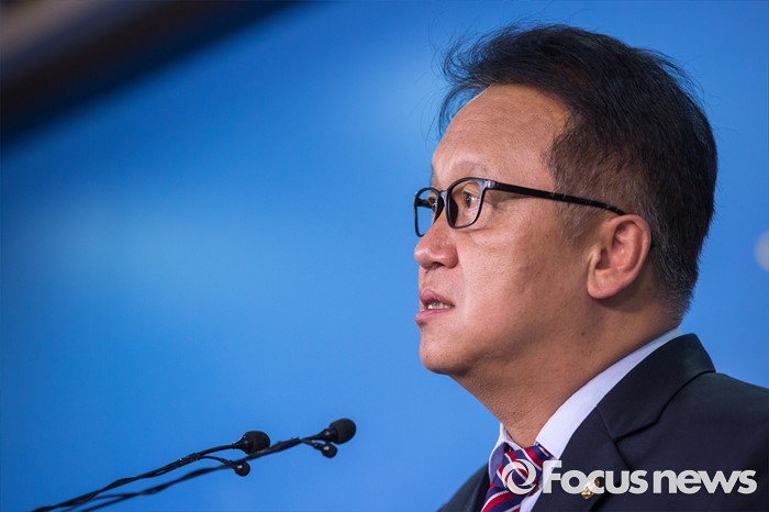 (서울=포커스뉴스) 민병두 더불어민주당 의원이 15일 오전 서울 여의도 국회에서 조선해운산업 부실화 진상 규명 위한 국정조사 추진을 촉구하는 기자회견을 하고 있다.