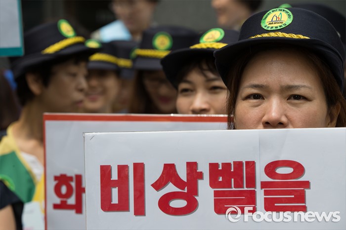 (서울=포커스뉴스) 15일 오전 서울 강남구 강남역인근에서 안전문화운동 실천협의회, 여성 민방대원들이 여성 안전 대책을 촉구하며 캠페인을 벌이고 있다.