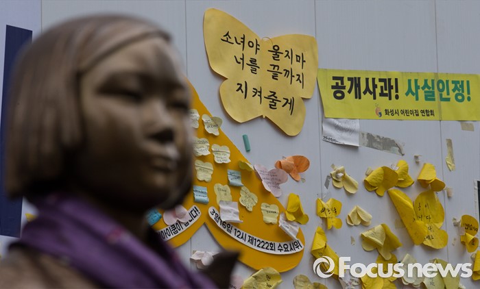 (서울=포커스뉴스) 15일 오후 서울 종로구 옛 일본대사관 앞에서 제1235차 일본군 위안부 문제해결을 위한 정기 수요집회가 열리고 있다.