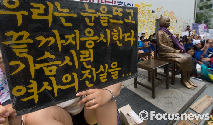(서울=포커스뉴스) 15일 오후 서울 종로구 옛 일본대사관 앞에서 제1235차 일본군 위안부 문제해결을 위한 정기 수요집회가 열리고 있다.