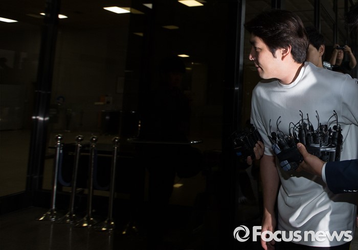 (서울=포커스뉴스) 음주운전 사고를 일으킨 그룹 슈퍼주니어의 멤버 강인(31·본명 김영운)이 15일 오후 서울중앙지방검찰청에 조사를 받기 위해 출석하고 있다.