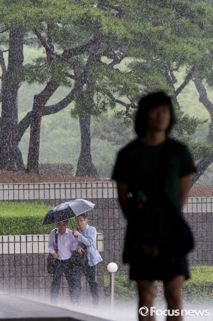 (서울=포커스뉴스) 전국적으로 많은 비가 내린 15일 오후 서울중앙지방검찰청에서 우산을 쓴 시민들이 발걸음을 재촉하고 있다. 기상청은 이번주 일요일부터 본격적인 장마가 시작될 것으로 전망했다.