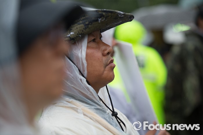 (서울=포커스뉴스) 15일 오후 유성기업 노동자 故 한광호씨의 분향소를 양재동 현대차 본사 앞으로 옮기는 꽃길 100리 행진에 참여한 노동자들이 현대차 본사 앞으로 들어오고 있다.