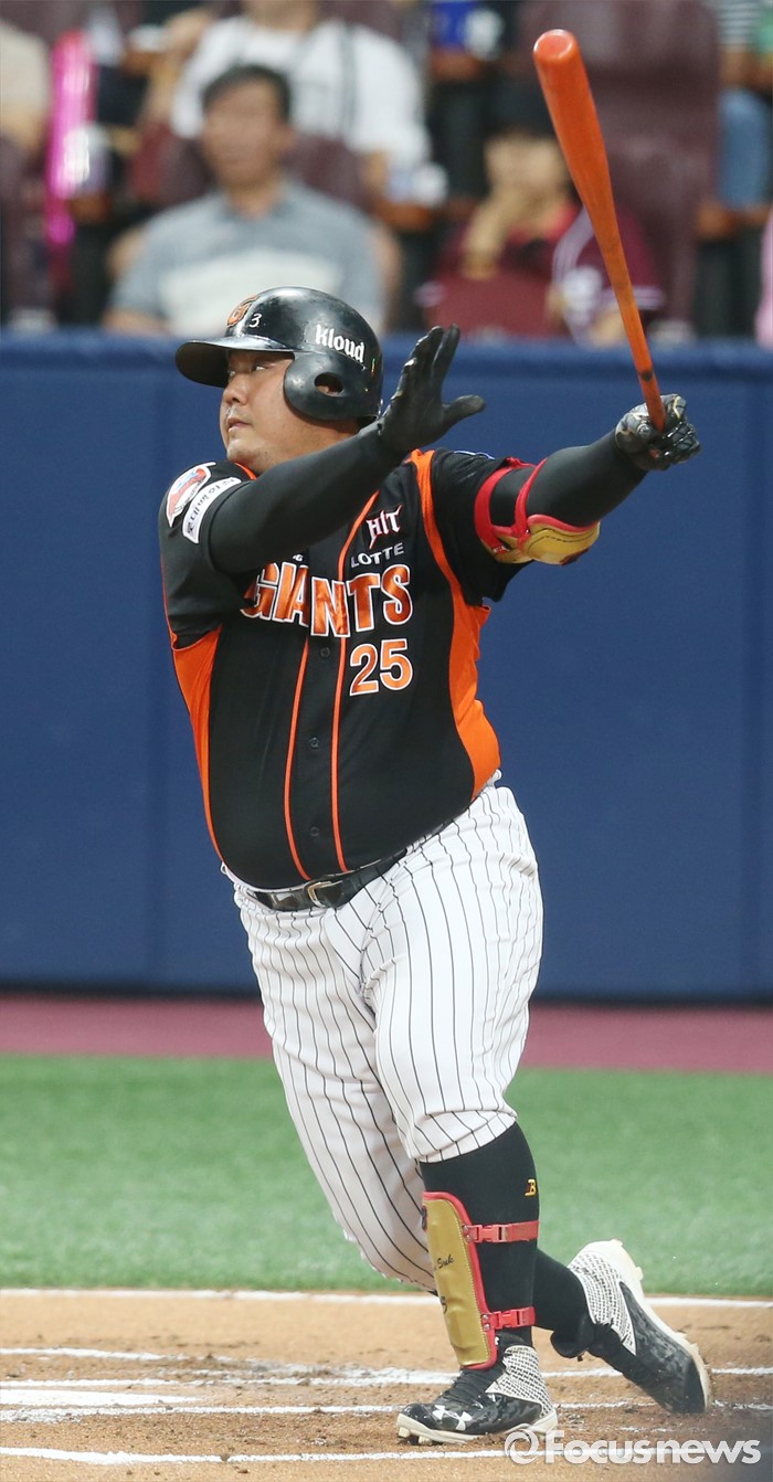 (서울=포커스뉴스) 15일 서울 고척 스카이돔 구장에서 열린 2016 프로야구 롯데-넥센 경기 1회초 1사 2루에서 롯데 최준석이 1타점 우전 안타를 날리고 있다.