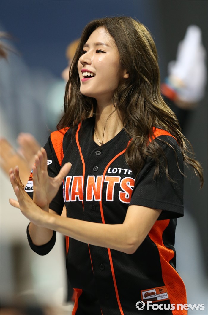 (서울=포커스뉴스) 15일 서울 고척 스카이돔 구장에서 열린 2016 프로야구 롯데-넥센 경기에서 롯데 치어리더 박기량이 승리를 부르는 응원을 하고 있다.