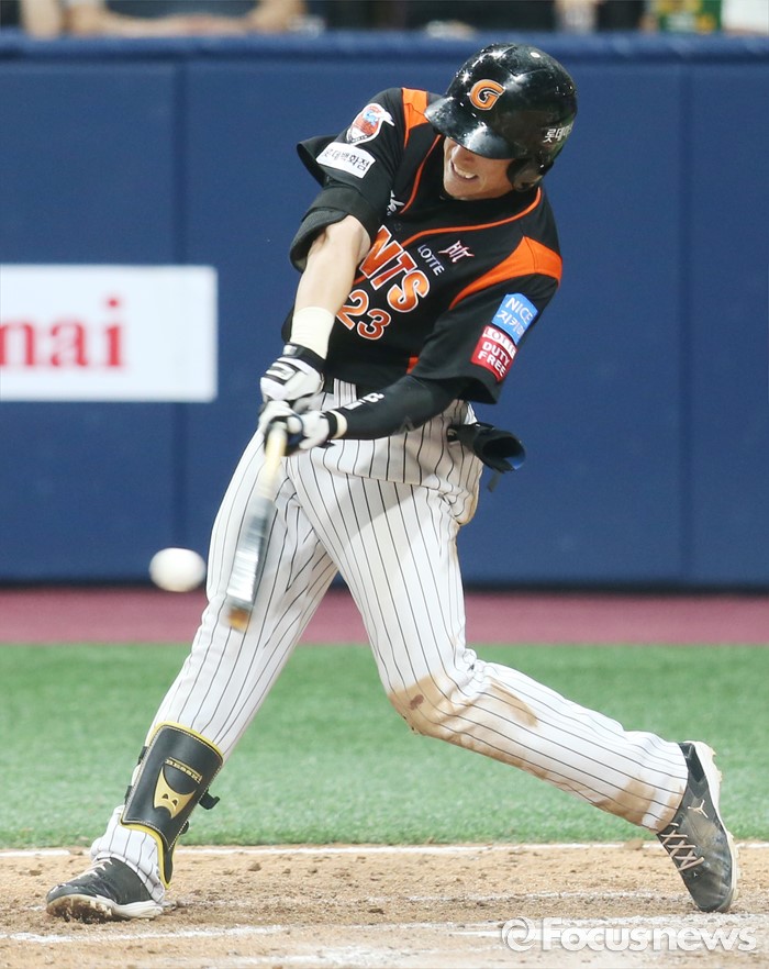(서울=포커스뉴스) 15일 서울 고척 스카이돔 구장에서 열린 2016 프로야구 롯데-넥센 경기 6회초 롯데 아두치가 외야 플라이를 치고 있다.