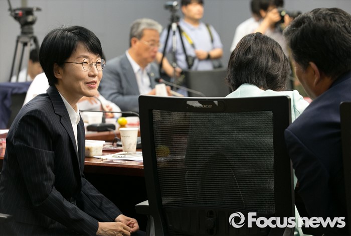 (서울=포커스뉴스) 16일 오전 서울 여의도 국회 의원회관에서 열린 국민의당 16차 정책역량강화 워크숍에 참석한 박선숙 의원이 동료 의원들과 대화하고 있다. 리베이트 수수 의혹을 받고 있는 김수민 의원은 이날 워크숍에 불참했다.