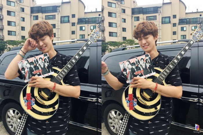 공명 소속사 판타지오는 16일 공식 SNS를 통해 '딴따라' 마지막 회 대본과 기타를 들고 있는 공명의 모습을 공개했다. 기타리스트 카일 역으로 출연 중인 공명은 기타와 마지막 회 대본을 들고 눈물을 훔치는 듯한 제스처로 아쉬운 마음을 전했다.