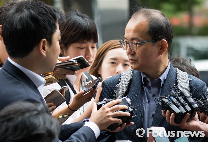 (서울=포커스뉴스) 김수민 국민의당 의원 리베이트 사건으로 고발된 왕주현 전 사무부총장이 16일 오전 영장실질심사를 받기 위해 서울 마포구 서울서부지방검찰청에 들어서며 취재진 질문을 듣고 있다.