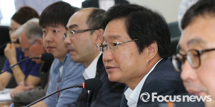 (세종=포커스뉴스) 김영석(오른쪽 두 번째) 해양수산부 장관이 16일 오전 세종시 정부세종청사 해수부 중회의실에서 열린 세월호 공정 점검회의에 참석해 모두발언을 하고 있다.