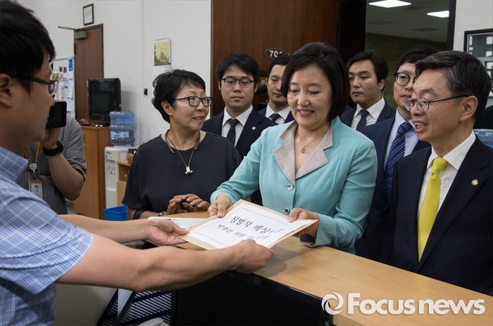 | △ 징벌적 배상법 제정안 접수하는 박영선 |
