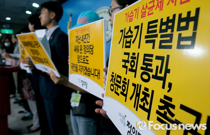 (서울=포커스뉴스) 16일 오전 서울 여의도 국회 정론관에서 이정미 정의당 원내수석부대표, 가습기살균제 피해자와 가족모임이 정세균 국회의장에게 대책마련 대국민 서명지를 전달하기에 앞서 기자회견을 하고 있다.