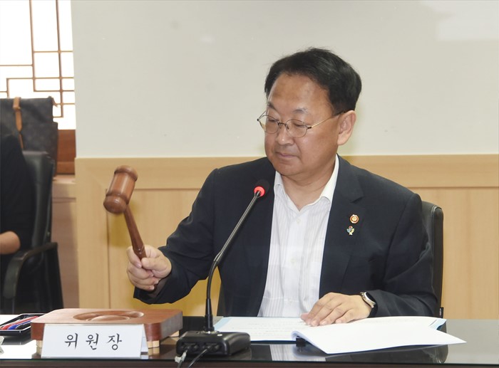 (서울=포커스뉴스) 유일호 부총리 겸 기획재정부 장관이 6월 16일 광화문 서울청사에서 열린 '제11차 공공기관운영위원회'를 주재, 회의시작을 알리는 의사봉을 두드리고 있다. <사진제공=기획재정부>
