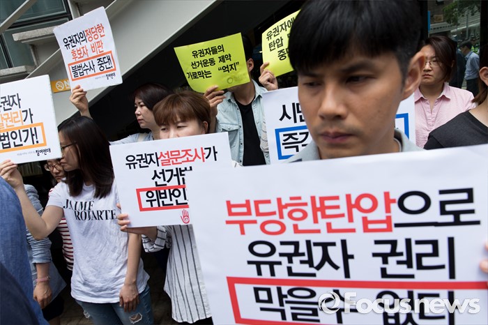 (서울=포커스뉴스) 16일 오전 서울 종로구 참여연대 앞에서 2016총선시민네트워크와 참여연대가 시민단체 압수수색을 규탄하는 기자회견을 하고 있다.