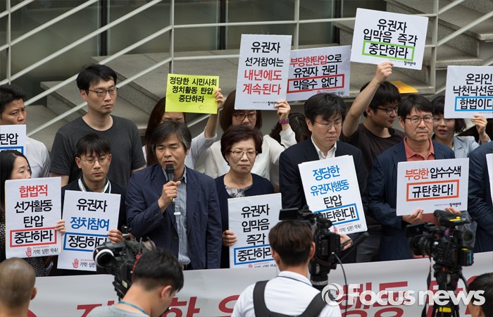 (서울=포커스뉴스) 16일 오전 서울 종로구 참여연대 앞에서 2016총선시민네트워크와 참여연대가 시민단체 압수수색을 규탄하는 기자회견을 하고 있다.