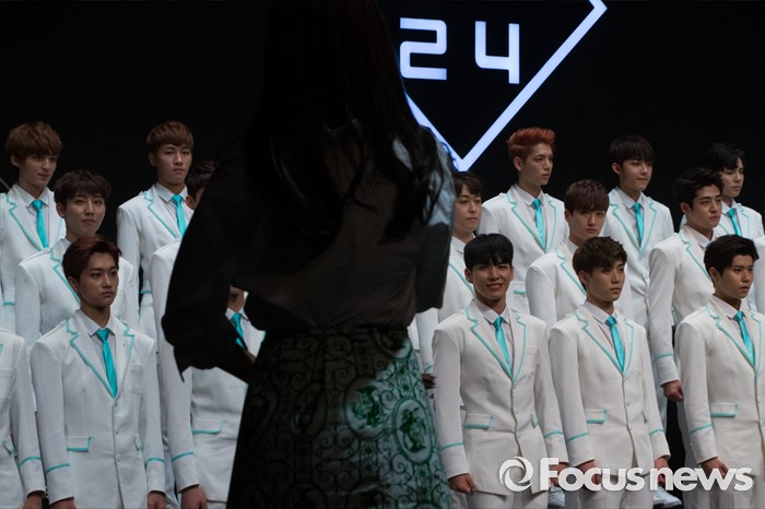 (서울=포커스뉴스) 16일 오후 서울 여의도구 63빌딩 그랜드볼룸에서 열린 보이그룹 오디션 프로그램 '소년24 프로젝트' 제작발표회에서 49명의 출연자들이 포토타임을 갖고 있다.