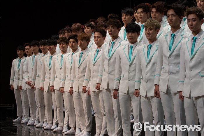 (서울=포커스뉴스) 16일 오후 서울 여의도구 63빌딩 그랜드볼룸에서 열린 보이그룹 오디션 프로그램 '소년24 프로젝트' 제작발표회에서 49명의 출연자들이 포토타임을 갖고 있다.