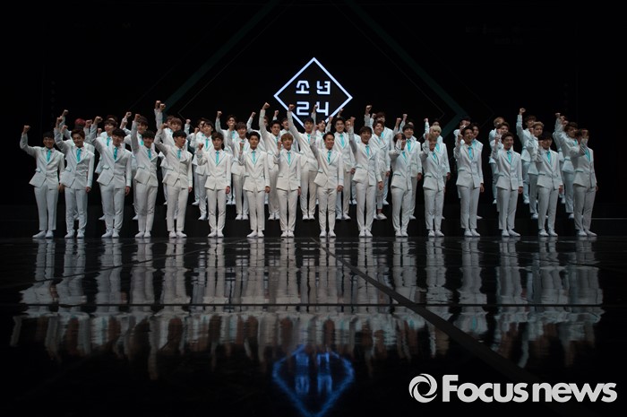 (서울=포커스뉴스) 16일 오후 서울 여의도구 63빌딩 그랜드볼룸에서 열린 보이그룹 오디션 프로그램 '소년24 프로젝트' 제작발표회에서 49명의 출연자들이 포토타임을 갖고 있다.