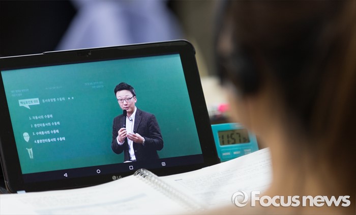 (서울=포커스뉴스) 지방직 9급 공무원 필기시험을 이틀 앞둔 15일 오후 서울 동작구 공단기 노량진학원에서 한 시험 응시자가 인터넷 강의를 듣고 있다.