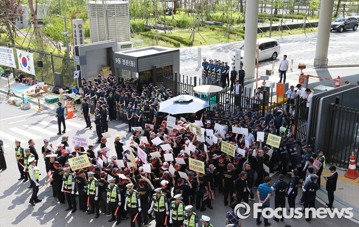 (세종=포커스뉴스) 16일 오후 세종시 정부세종청사 국가보훈처 앞에서 6.25 전몰군경미수당비대위 구성원들이 예산확보를 요구하는 집회를 하고 있다.