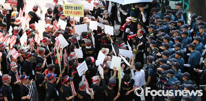 (세종=포커스뉴스) 16일 오후 세종시 정부세종청사 국가보훈처 앞에서 6.25 전몰군경미수당비대위 구성원들이 예산확보를 요구하는 집회를 하고 있다.