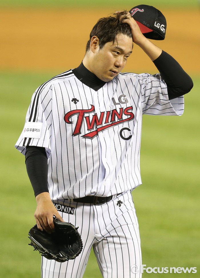 △ 마운드 내려가는 LG 투수 류제국
