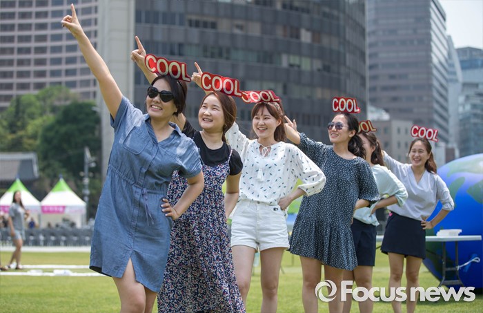 (서울=포커스뉴스) 17일 오전 서울 중구 서울광장에서'시원차림 캠페인'이 열리고 있다. 지난 2005년부터 시작된 이 캠페인은 넥타이를 매지 않은 간편하고 시원한 옷차림으로 더위를 이기고 에너지도 절약하자는 캠페인이다.