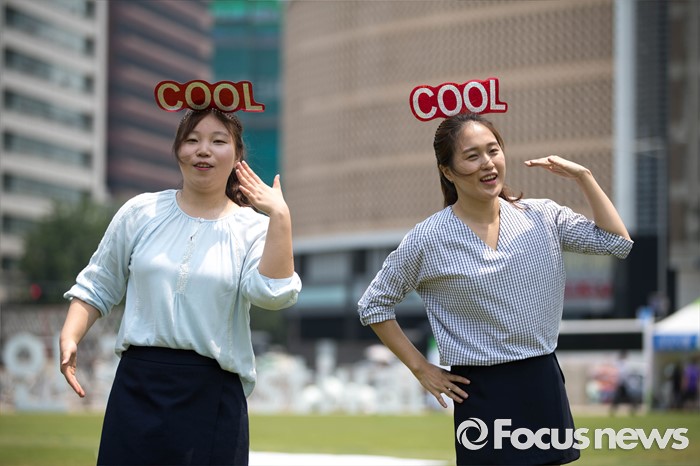 (서울=포커스뉴스) 17일 오전 서울 중구 서울광장에서'시원차림 캠페인'이 열리고 있다. 지난 2005년부터 시작된 이 캠페인은 넥타이를 매지 않은 간편하고 시원한 옷차림으로 더위를 이기고 에너지도 절약하자는 캠페인이다.