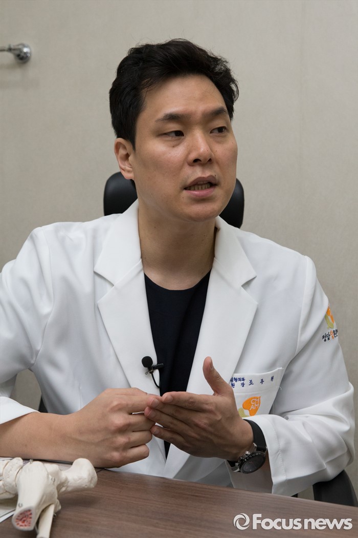 (서울=포커스뉴스) 9일 오전 서울 강남구 청담참튼튼병원에서 조주원 정형외과 전문의가 인터뷰를 하고 있다.
