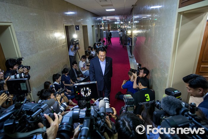 (서울=포커스뉴스) 정진석 새누리당 원내대표가 17일 오후 서울 여의도 국회에서 정세균 국회의장을 비롯한 야당 원내대표들과 회동을 하기 위해 국회의장실로 들어서고 있다.