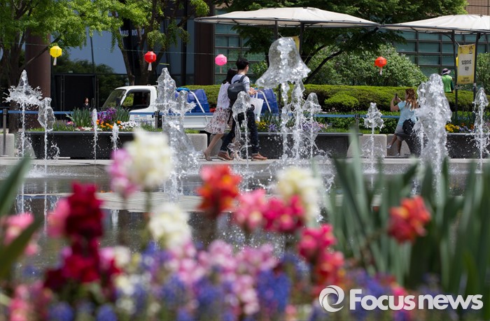 기상청 관계자는 "남해상은 18~19일, 동해상은 19일 돌풍과 함께 천둥·번개가 치는 곳이 있겠다"며 "항해나 조업하는 선박은 유의하기 바란다"고 전했다.서울 한낮 기온이 초여름 날씨를 보이는 26일 오후 광화문광장 바닥분수대를 찾은 시민들이 즐거운 시간을 보내고 있다. 2016.04.26 김인철 기자