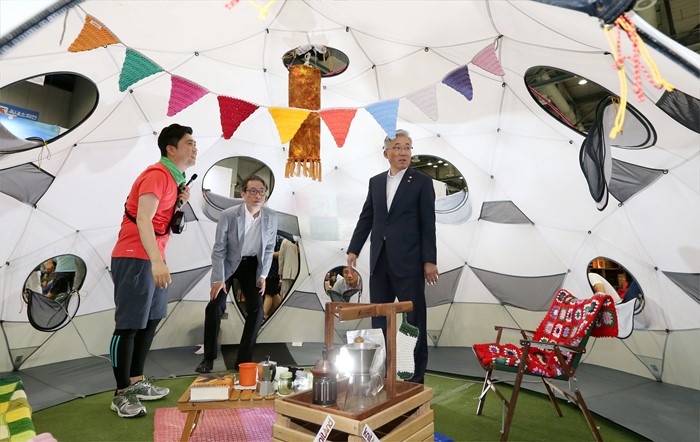 △ 캠핑용품 전시관 둘러보는 김종덕 장관