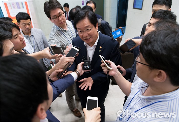 (양평=포커스뉴스) 17일 오후 경기 양평 강하면 블룸비스타에서 열린 2016년도 한국선주협회 사장단 연찬회에서 김영석 해양수산부 장관이 취재진 질문에 답하고 있다.