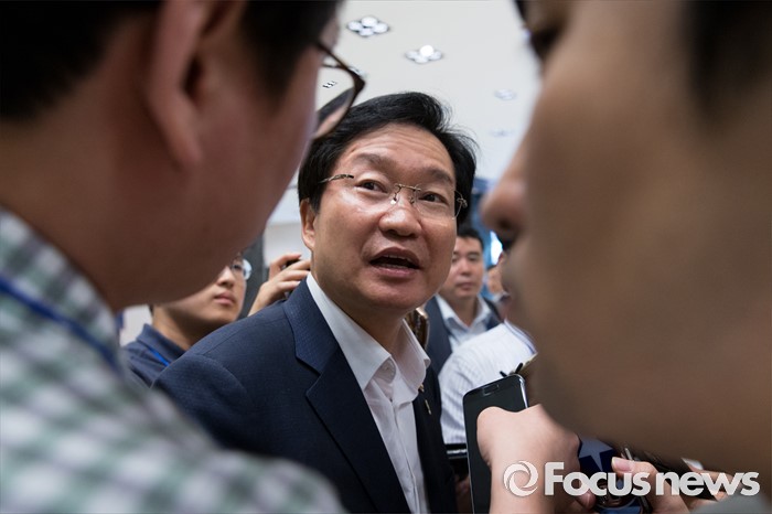 (양평=포커스뉴스) 17일 오후 경기 양평 강하면 블룸비스타에서 열린 2016년도 한국선주협회 사장단 연찬회에서 김영석 해양수산부 장관이 취재진 질문에 답하고 있다.