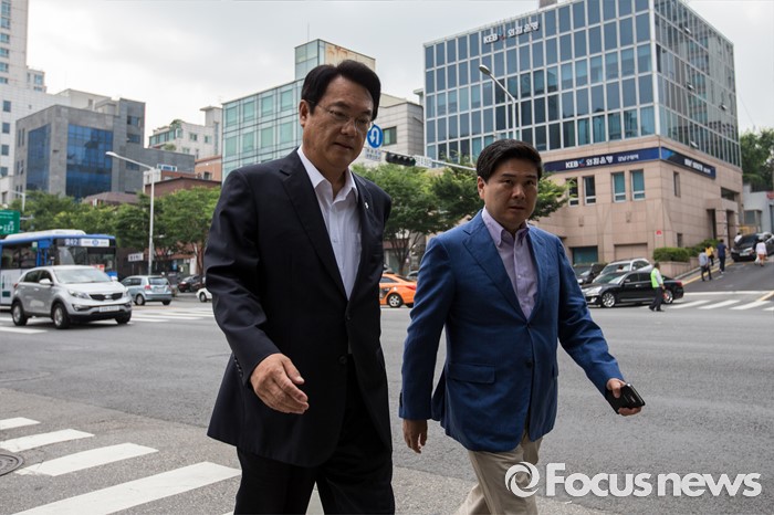 (서울=포커스뉴스) 정진석 새누리당 원내대표가 김희옥 혁신비상대책위원장과 회동을 하기 위해 19일 오전 서울 강남구 논현동 한 커피숍으로 들어서고 있다.