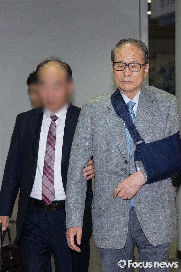 (서울=포커스뉴스) 20일 오전 서울 서초구 서울중앙지방법원에서 포스코 비리에 연루된 혐의를 받고 있는 이상득 전 의원이 2차공판에 출석하고 있다.