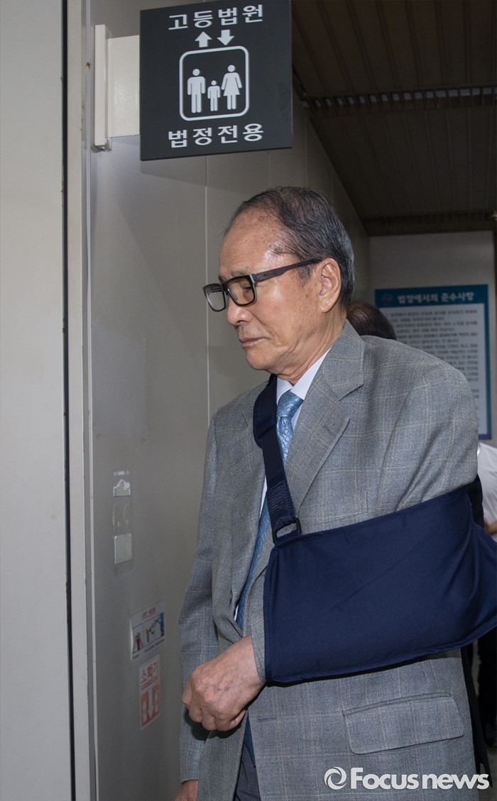 (서울=포커스뉴스) 20일 오전 서울 서초구 서울중앙지방법원에서 포스코 비리에 연루된 혐의를 받고 있는 이상득 전 의원이 2차공판에 출석하고 있다.