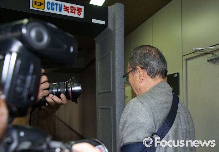 (서울=포커스뉴스) 20일 오전 서울 서초구 서울중앙지방법원에서 포스코 비리에 연루된 혐의를 받고 있는 이상득 전 의원이 2차공판에 출석하고 있다.