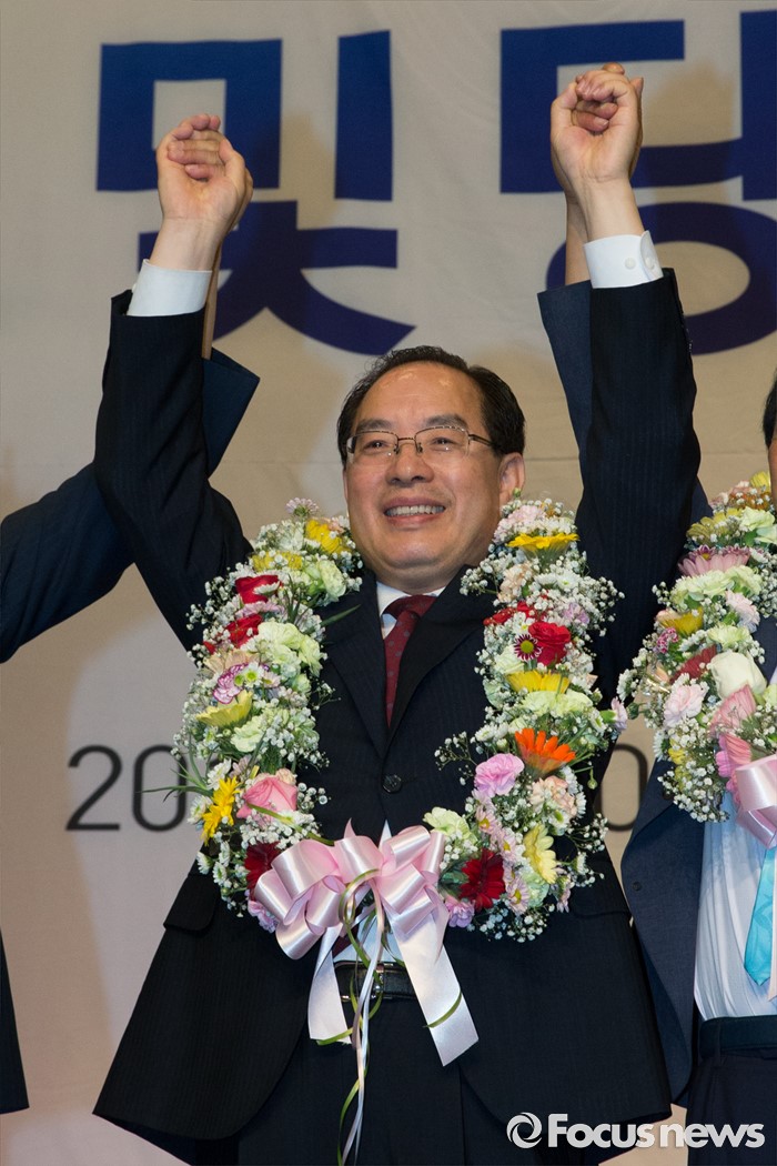 (서울=포커스뉴스) 20일 오전 서울 서초구 한국교원단체총연합회에서 열린 제36대 한국교총 회장선거 개표 및 당선자 발표에서 회장으로 선출된 하윤수 부산교대 총장이 기념촬영을 하고 있다.