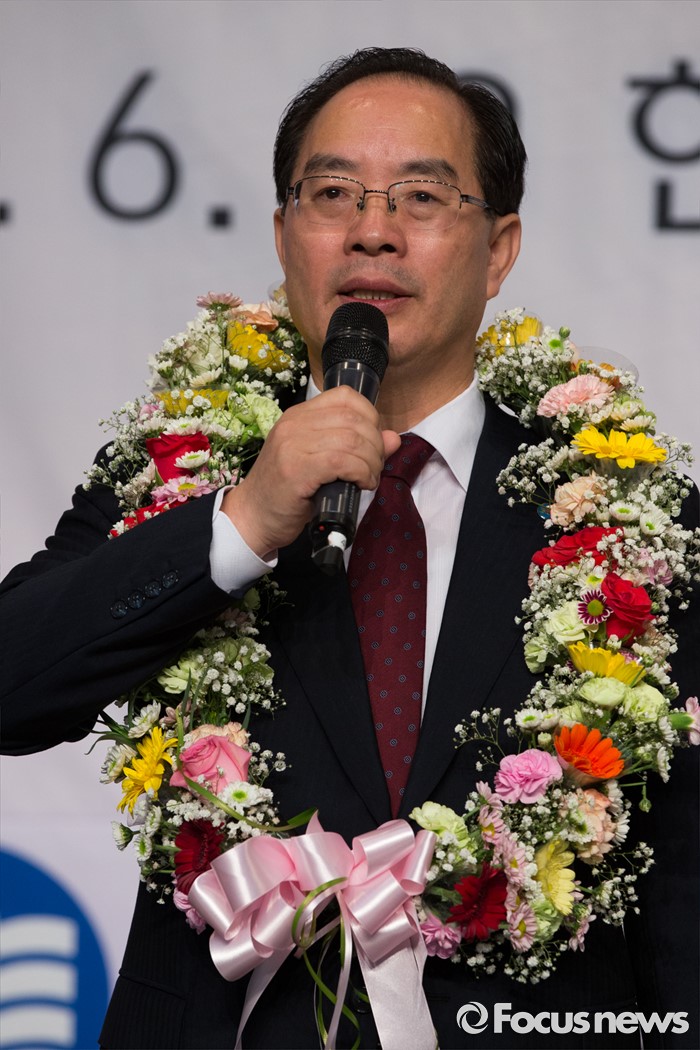 (서울=포커스뉴스) 20일 오전 서울 서초구 한국교원단체총연합회에서 열린 제36대 한국교총 회장선거 개표 및 당선자 발표에서 회장으로 선출된 하윤수 부산교대 총장이 당선 소감을 말하고 있다.