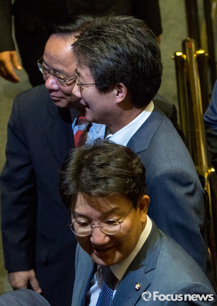 (서울=포커스뉴스) 권성동 새누리당 사무총장과 유승민 새누리당 의원이 20일 오전 서울 여의도 국회에서 열린 본회의를 마친 뒤 회의장을 나서고 있다.