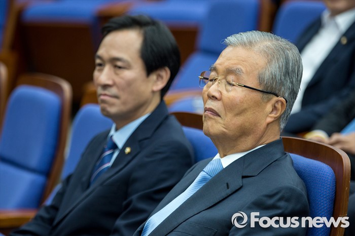 (서울=포커스뉴스) 김종인 더불어민주당 비상대책위 대표와 우상호 원내대표가 20일 오전 서울 여의도 국회에서 열린 '민생국회, 일하는 국회 워크숍'에 참석 하고 있다.