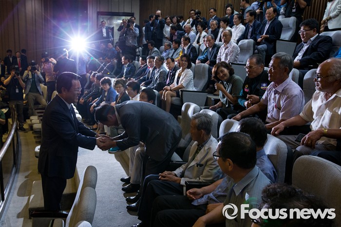(서울=포커스뉴스) 정진석 새누리당 원내대표가 20일 오전 서울 여의도 국회에서 열린 본회의를 마친 뒤 정 원내대표의 교섭단체 대표연설을 방청하기 위해 본회의장을 찾은 충남 공주시 지역구 주민들과 인사 하고 있다.