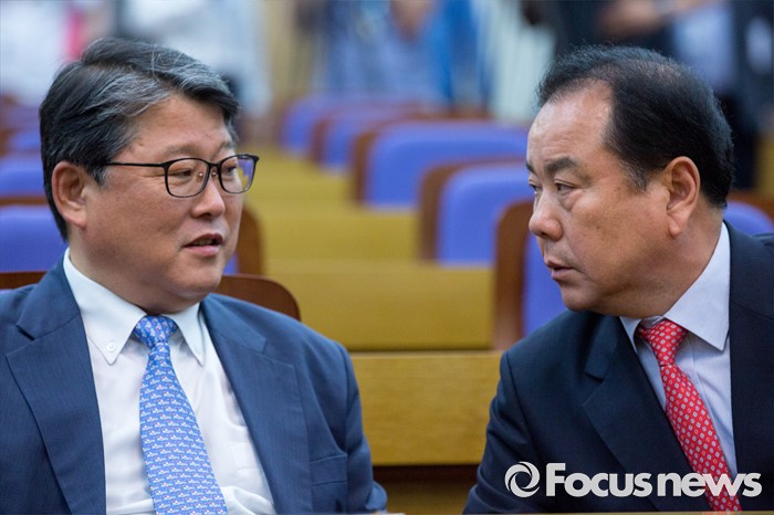 | △ 대화 나누는 조원진 의원-이채익 의원 |