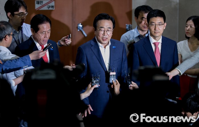 (서울=포커스뉴스) 서병수(가운데) 부산시장이 20일 오후 서울 여의도 국회 정론관에서 신공항 입지 결정을 앞두고 입장 발표 기자회견을 마친 뒤 김세연(오른쪽) 새누리당 부산시당 위원장, 배덕광 의원과 함께 취재진 질문에 답하고 있다.