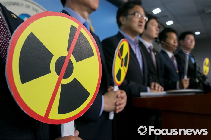 (서울=포커스뉴스) 21일 오전 서울 여의도 국회 정론관에서 탈핵·에너지전환 국회의원 모임이 신고리 원전 5, 6호기 건설 중단 촉구 기자회견을 하고 있다.