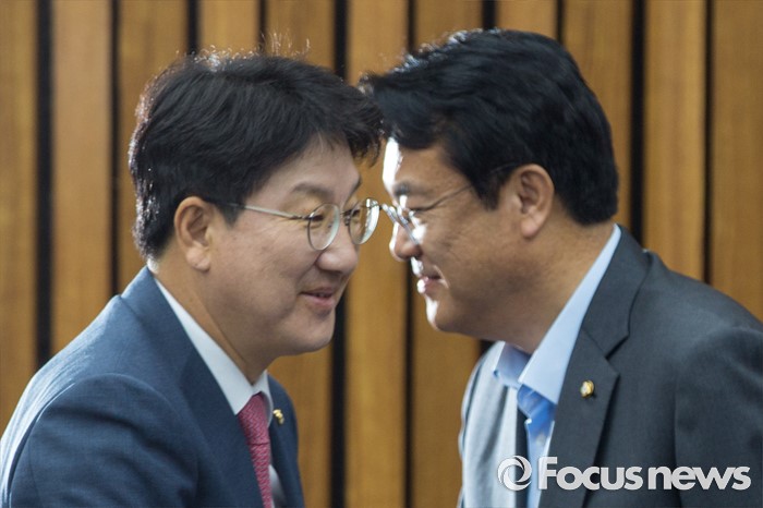 (서울=포커스뉴스) 정진석 새누리당 원내대표와 권성동 사무총장이 21일 오전 서울 여의도 국회에서 열린 원내대책회의에 참석하고 있다.
