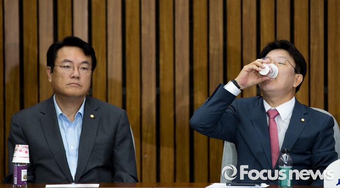 (서울=포커스뉴스) 권성동 새누리당 사무총장이 21일 오전 서울 여의도 국회에서 열린 원내대책회의에 참석해 물을 마시고 있다.